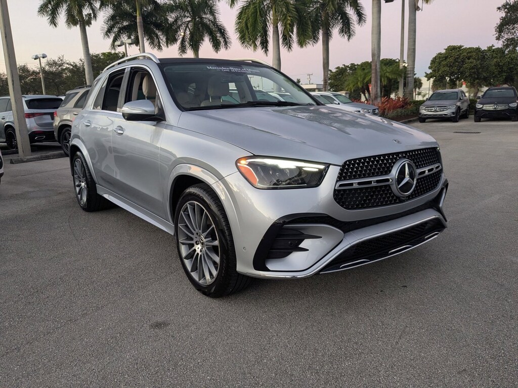 Mercedes-Benz of Miami has a wide selection of exceptional pre-owned vehicles to choose from, including this 2025 Mercedes-Benz GLE. This Mercedes-Benz includes: AMG LINE EXTERIOR TRAILER HITCH Tow Hitch EXCLUSIVE TRIM HD Radio Cooled Front Seat(s) Heated Front Seat(s) Satellite Radio Premium Sound System Requires Subscription CIRRUS SILVER METALLIC PANORAMA POWER TILT/SLIDING SUNROOF Panoramic Roof Generic Sun/Moonroof Sun/Moonroof WINTER PACKAGE Heated Steering Wheel NATURAL GRAIN BROWN WALNUT TRIM Woodgrain Interior Trim WHEELS: 21" AMG MULTISPOKE Tires - Front Performance Aluminum Wheels Tires - Rear Performance MACCHIATO HEADLINER *Note - For third party subscriptions or services, please contact the dealer for more information.* The Mercedes-Benz GLE is the benchmark all other SUVs strive to meet. With exceptional power, towing and handling, this SUV can handle anything thrown at it. Sophistication & understated luxury comes standard on this Mercedes-Benz GLE GLE 350. Well-known by many, the GLE has become a household name in the realm of quality and prestige. Left your phone at the restaurant? No problem. With the navigation system on this Mercedes-Benz GLE, you'll be able to quickly find your way back to get it. Feel at ease with your purchase of this Mercedes-Benz GLE GLE 350, The service records are included allowing you to truly know what you're buying.